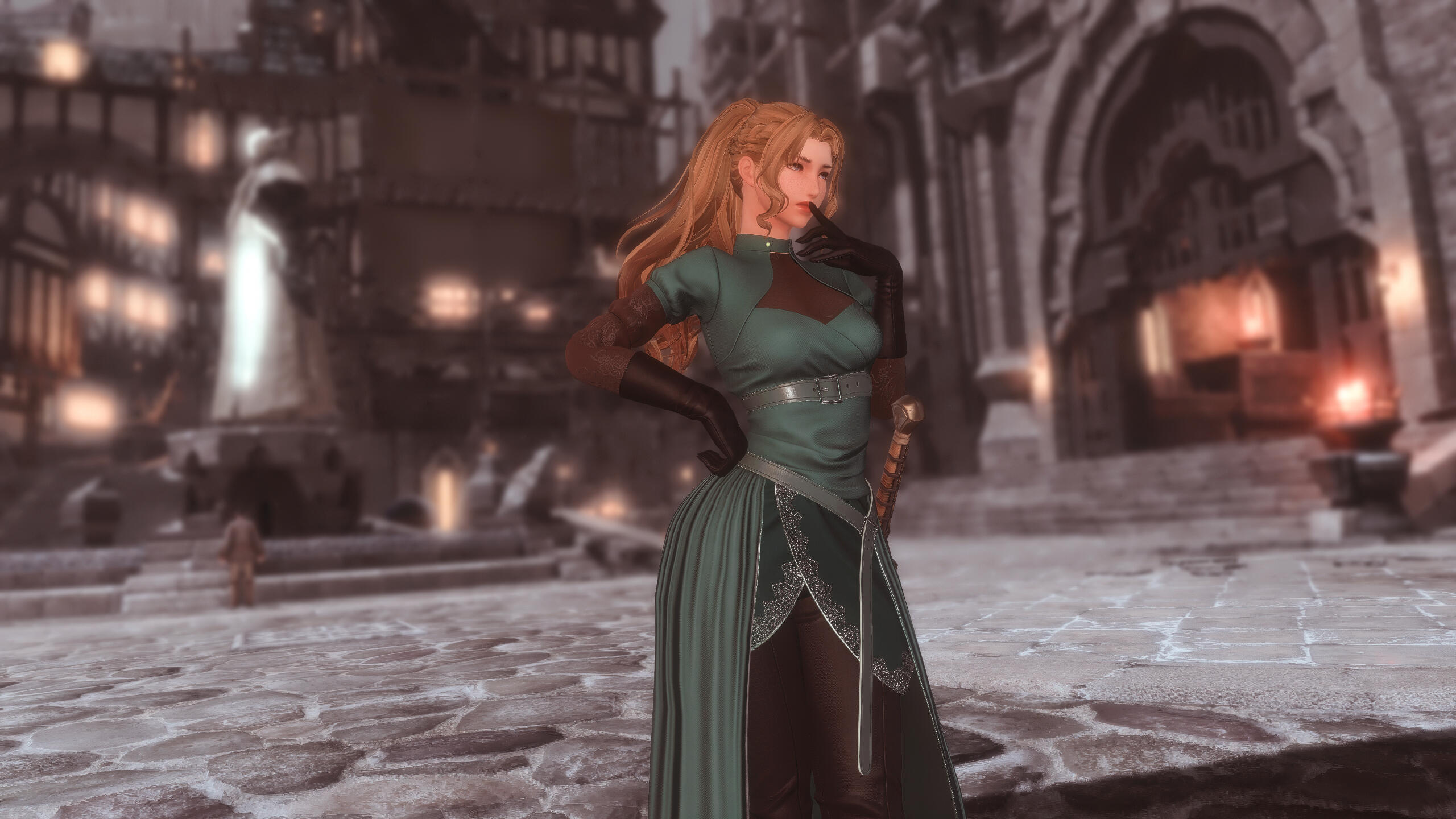 biography born into a firmly middle class, merchant family, genevieve has led an wholly unremarkable life. as a middle child, she didn't have the pressure of learning the family trade, and she was too self-sufficient to require as much attention as her youngest sibling. this meant she had the freedom to pursue her own interests, but it was her pride and dedication to her family that kept her close.she is average in all ways - a passable fighter, pleasant enough to interact with, and look at. But Genevieve has yet to make any great impact in the world. Perhaps, she never will, and that's perfectly all right with her. Her only goal is to find some way to elevate her family within ishgard. ideally, to find some connection or alliance with a noble family, within one of the high houses. to that end, she's found herself chasing a certain noble but estranged son of house Holtemaigne across the star.
